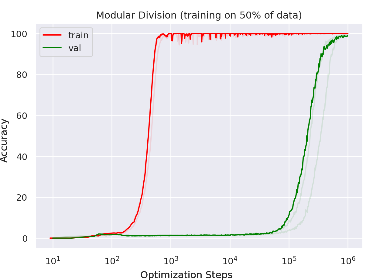 - Используем PL-условие: \begin{aligned} \mathbb{E}[f(x_{k+1})] &\leq f(x_k) - \alpha_k \|\nabla f(x_k)\|^2 + \alpha_k^2\frac{L}{2} \mathbb{E}[\|\nabla f_{i_k}(x_k)\|^2] \\ \stackrel{\text{PL: } \|\nabla f(x_k)\|^2 \geq 2\mu(f(x_k) - f^*)}{ } \;\; &\leq f(x_k) - 2\alpha_k \mu (f(x_k) - f^*) + \alpha_k^2\frac{L}{2} \mathbb{E}[\|\nabla f_{i_k}(x_k)\|^2] \\ {\stackrel{\text{Вычитаем } f^*}{ }} \;\; &\leq (f(x_k) - f^*) - 2\alpha_k \mu (f(x_k) - f^*) + \alpha_k^2\frac{L}{2} \mathbb{E}[\|\nabla f_{i_k}(x_k)\|^2] \\ {\scriptsize \text{Перегруппируем}} \;\; &\leq (1 - 2\alpha_k \mu) [f(x_k) - f^*] + \alpha_k^2\frac{L}{2} \mathbb{E}[\|\nabla f_{i_k}(x_k)\|^2] \\ \stackrel{\text{Ограниченность дисперсии: } \mathbb{E}[\|\nabla f_i(x_k)\|^2] \leq \sigma^2}{ } \;\; &\leq (1 - 2\alpha_k \mu)[f(x_{k}) - f^*] + \frac{L \sigma^2 \alpha_k^2 }{2}. \end{aligned}